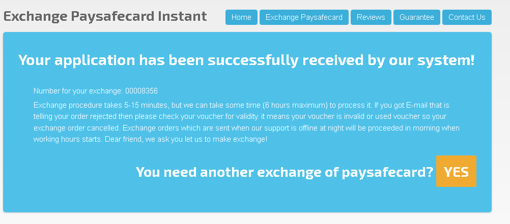 Spletna stran ponuja možnost, da vrednost iz Paysafecard prenesete na izbrani račun, npr. PayPal. Vse, kar morate vpisati je Paysafecard PIN kodo, znesek, ki ga želite prenesti ter izbrati račun, kamor bo znesek nakazan. Ko potrdite izmenjavo, se vam prikaže obvestilo o uspešni transakciji.